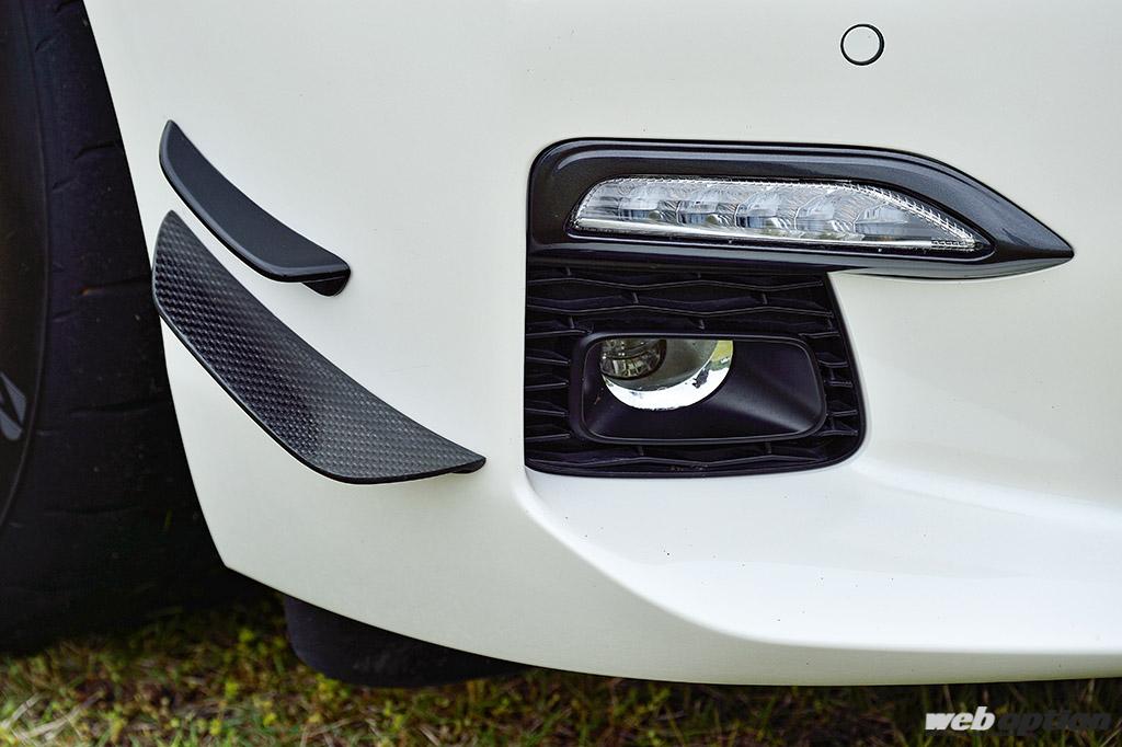 エクステリアも独自の空力チューンが敢行されている。フロントバンパーにはダブルカナードをセット。これはメルセデスの純正パーツからの流用だ。