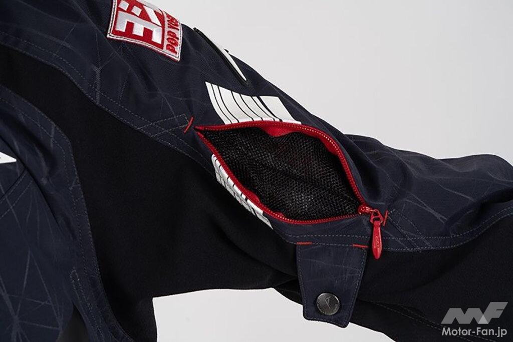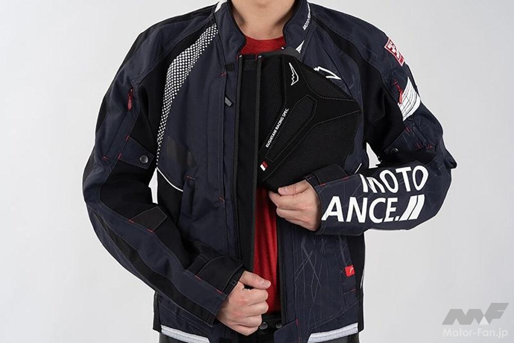 インナーウェアとアウターウェアのジョイントが可能な、「KUSHITANI CONNECTION.」も採用。肩部と肘部にはエアーCEパッド、脊椎部にはソフトパッドを標準装備。別売のプロテクターも装着可能。