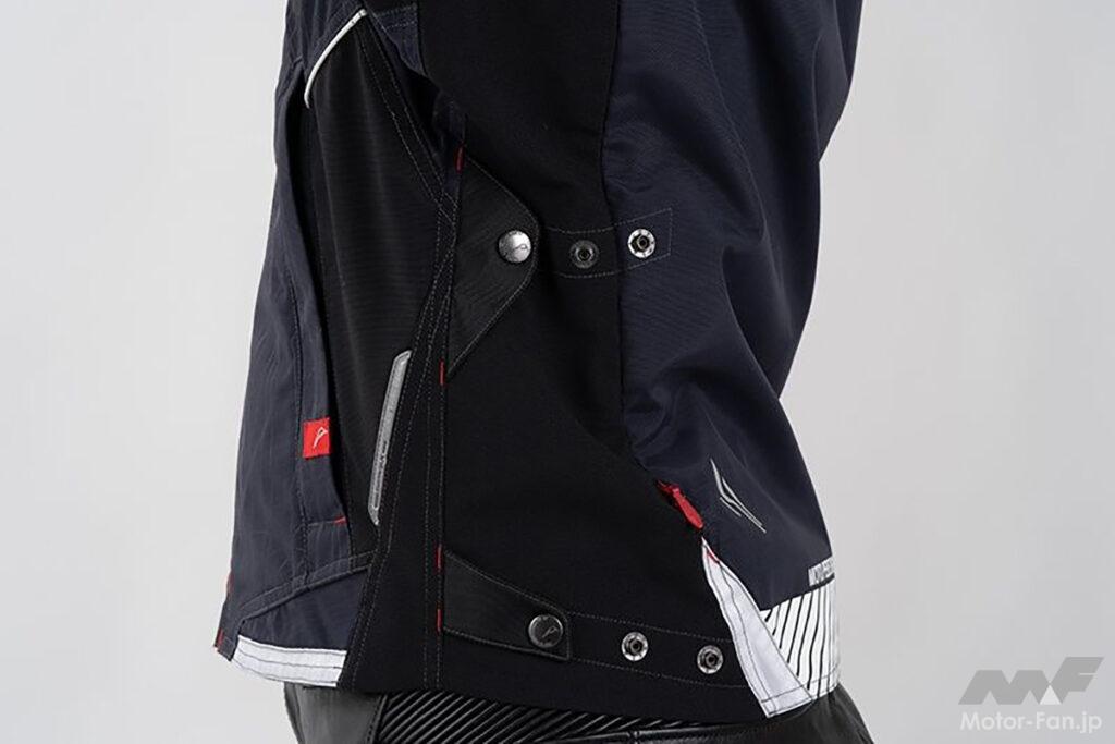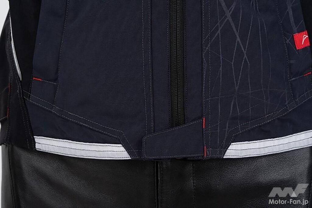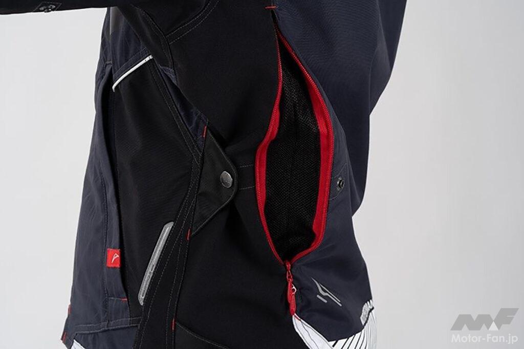 フルカウル付きのスーパースポーツはもちろん、ネイキッドスポーツやネオクラシックタイプのバイクにも良く似合う、ライディング機能満載のスポーツジャケット。スプレットエンボス柄素材の採用や、カラーリングを左右非対称とすることで、スポーティーなイメージを追求。サイズ拡大調整機能に加え、大型エアインテイクを兼用したフロントダブルファスナーも導入済みだ。