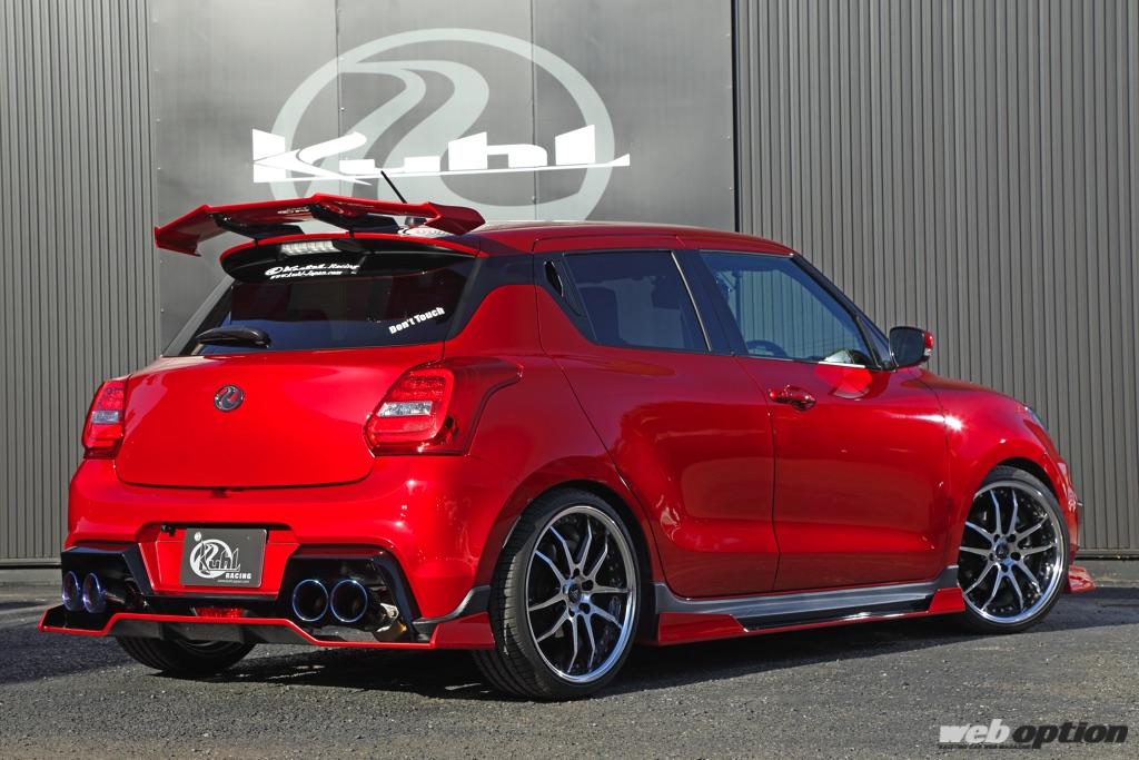 さらに新車ベースのコンプリートも用意。ZC33Sスイフトスポーツの場合だと、フルエアロや車高調、18インチのタイヤ&ホイールやナビなど総額178万円ほどのパーツ(工賃込み)を付けたフルカスタム仕様が312万円(6速MT)。その割引金額は約55万円という太っ腹ぶりなのである。