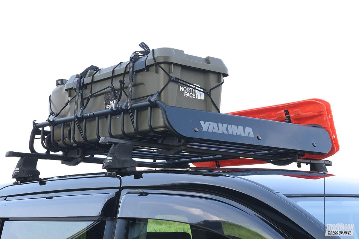 YAKIMAのルーフキャリアにはコンテナBOXの他、リカバリーボードを固定設置する。