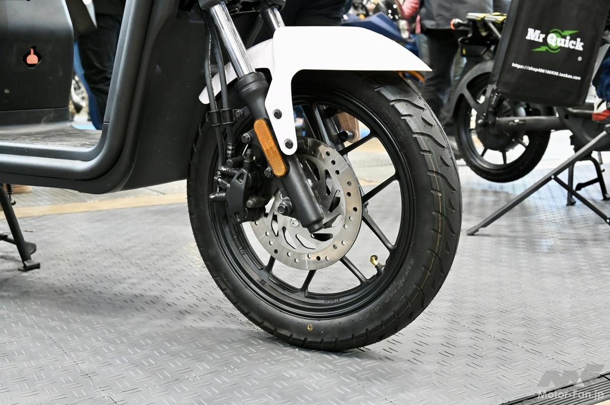 展示車両はプロトタイプのため、価格は非公表だった。しかし発売中の「GEV600」は19万6,900円(税込)で販売されているのでそれをベースに予想すると、原付二種モデルでも30万円以内に収まるのではないだろうか。さらに現在、補助金の対象車となるよう手続きを進めているとのことだった。対象となれば大きな訴求ポイントとなる。