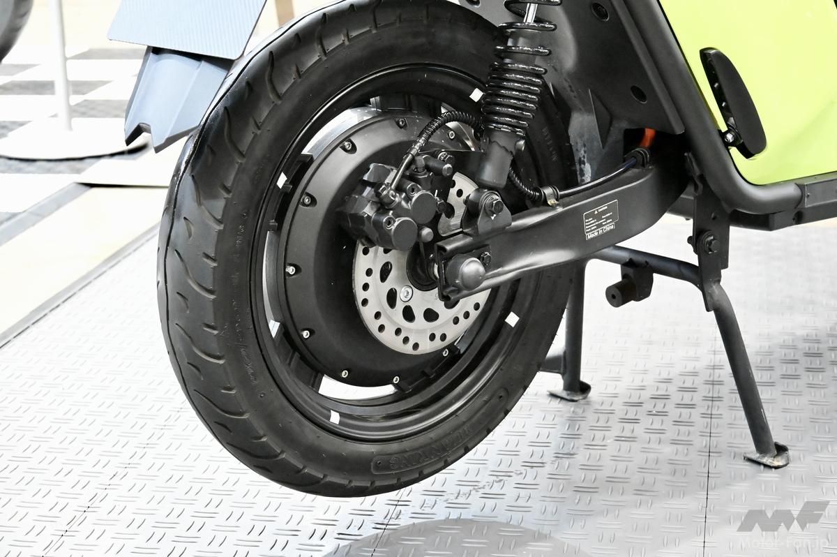安全性については、「PEV」シリーズは前後輪ともにディスクブレーキを装備していた。四輪のEVは回生ブレーキ機能があるのだが、「PEV」シリーズにはなく物理的な制動のみとなる。ただ、前後ディスクによる制動力は十分だろう。