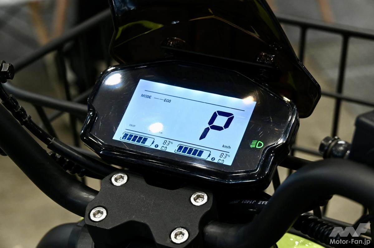 電装系は、ライトはLEDを使用。メーターは大型の液晶ディスプレイとなっている。速度計はもちろん、バッテリー残量やトリップ機能も備わる。
