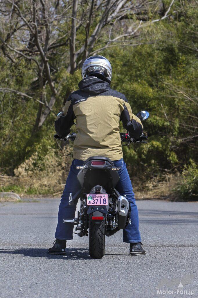 やや後退した位置にあるステップ、フラット気味のハンドルなどから、ポジション全体はスクランブラーというよりネイキッドスポーツといった感じです。しかし窮屈なところはまったくなく、上体もアップライトでシートの自由度もあるので、街乗りからツーリングまで疲労の少ない適切な乗車姿勢を実現してくれます。