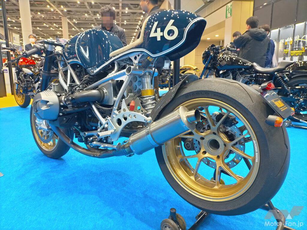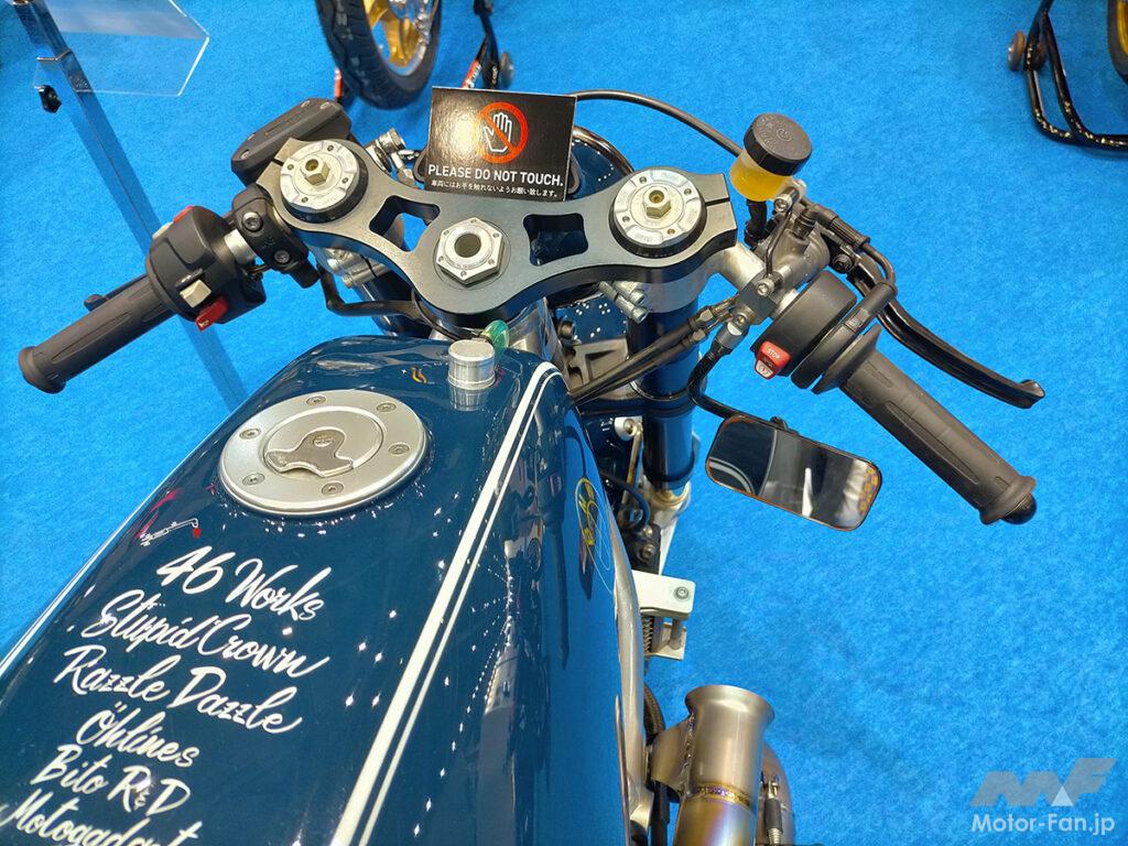 前後ホイールは超軽量かつ超高剛性なJB-POWER「MAGTAN(ゴールドカラー)」に変更し、足周りの軽量化とハンドリング性能を向上。小振りなナンバープレートホルダーにはキャッツアイテールとウインカーを配置。