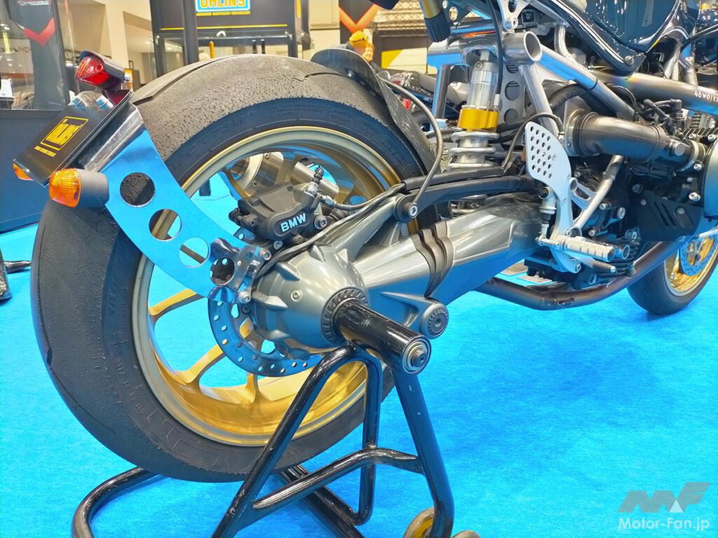 前後ホイールはノーマルと同径の17インチながら、世界初のマグネシウム鍛造という製法で生み出された、超軽量かつ超高剛性のJB-POWER「MAGTAN(ゴールドカラー)」を導入。タイヤはピレリのスポーツタイヤ「ディアブロ」を選択し、ノーマルと同サイズの前120/70-17、後180/55-17をセレクト。