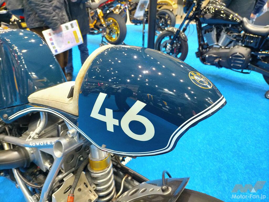 シートは50~60年代の世界GPマシンをイメージさせるシングル式とし、シートと一体型のシートカウルはアルミ叩き出しのワンオフを組み合わせ。