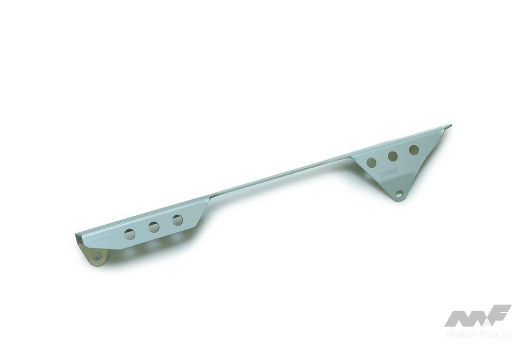 エンジンやリザーバータンクを飛び石や障害物からしっかりとガードするアイテム。アルミ製。シルバーアルマイト加工済み。