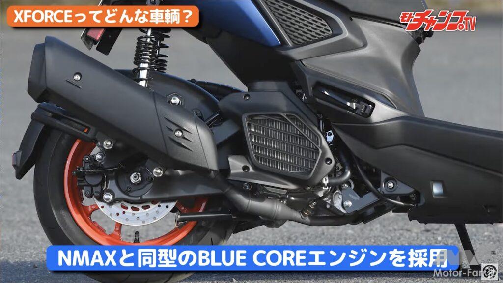 エンジンはNMAXと共通の水冷155cc単気筒BLUE CORE。始動モーターのないSMG(スマートモータージェネレーター)により静粛なエンジンスタートを可能としている。さらにVVA(可変バルブ機構)を取り入れ回転数に応じして最適な吸気を可能としている。これによりパワフルさと低燃費性能を両立させている。またトラクションコントロールシステムを採用しているため、滑りやすい路面で後輪がスリップすることを抑制してくれる。