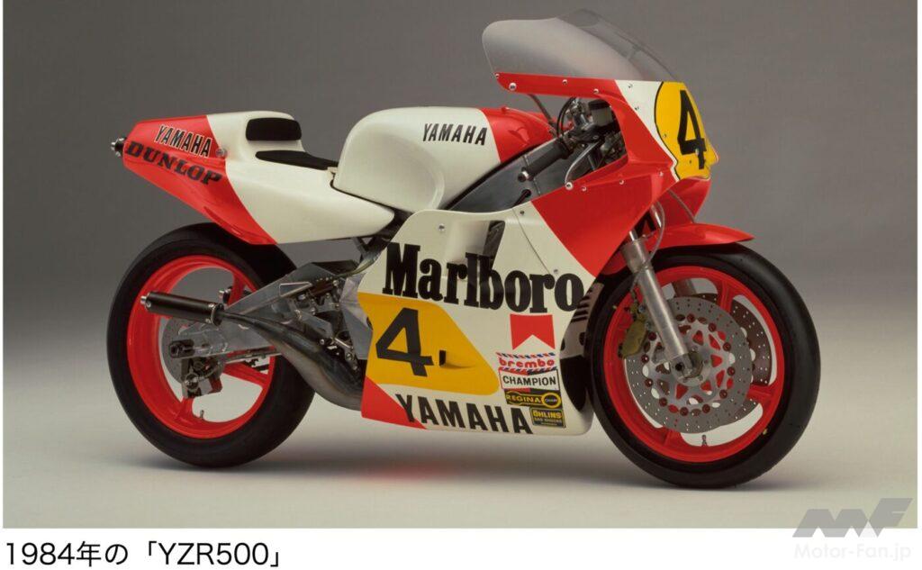 なるほど、これはかつてのレーサーをオマージュして開発されたモデルなのである。それも1980年代のレースシーンを回帰させる要素が随所に散りばめられていた。ズバリ開発のイメージリーダーは、1984年のファクトリーマシンだ。ケニー・ロバーツの後任となったエディー・ローソンのライディングで見事チャンピオンに輝いたYZR500なのである。