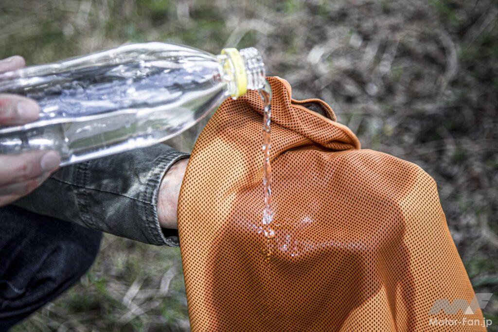 30分ほど運転を続けていると、何となく冷却効果さが薄れてきた。試しにバイクから降りてタオルを首から外すと、タオルの温度が当初より明らかに温かい。快適に過ごせるのは、40〜50分が限度といった印象。ぬるくなったらバイクから降りて、もう一度水に濡らせばOK。