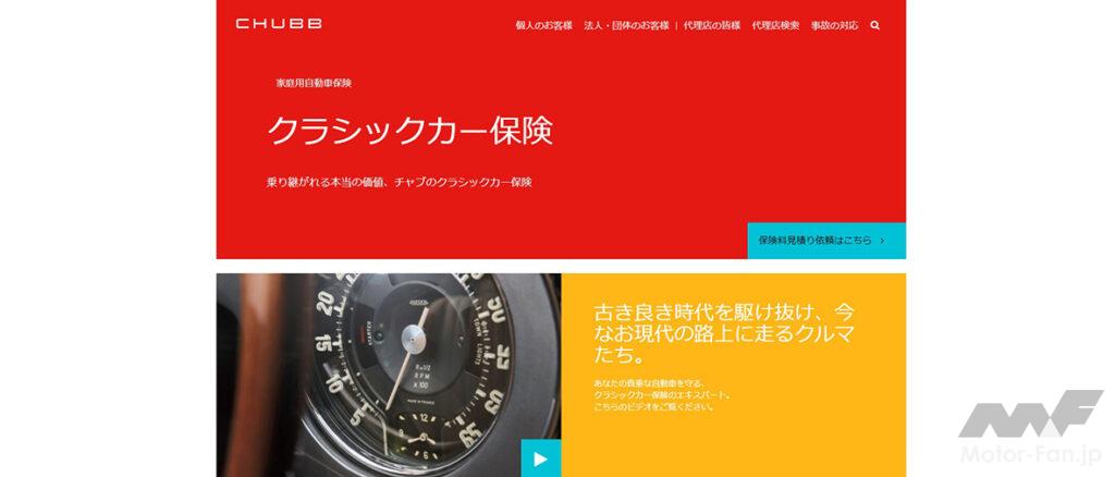 → Chubb(チャブ)損害保険の「クラシックカー保険」 https://www.chubb.com/jp-jp/individuals-families/classic-car.html