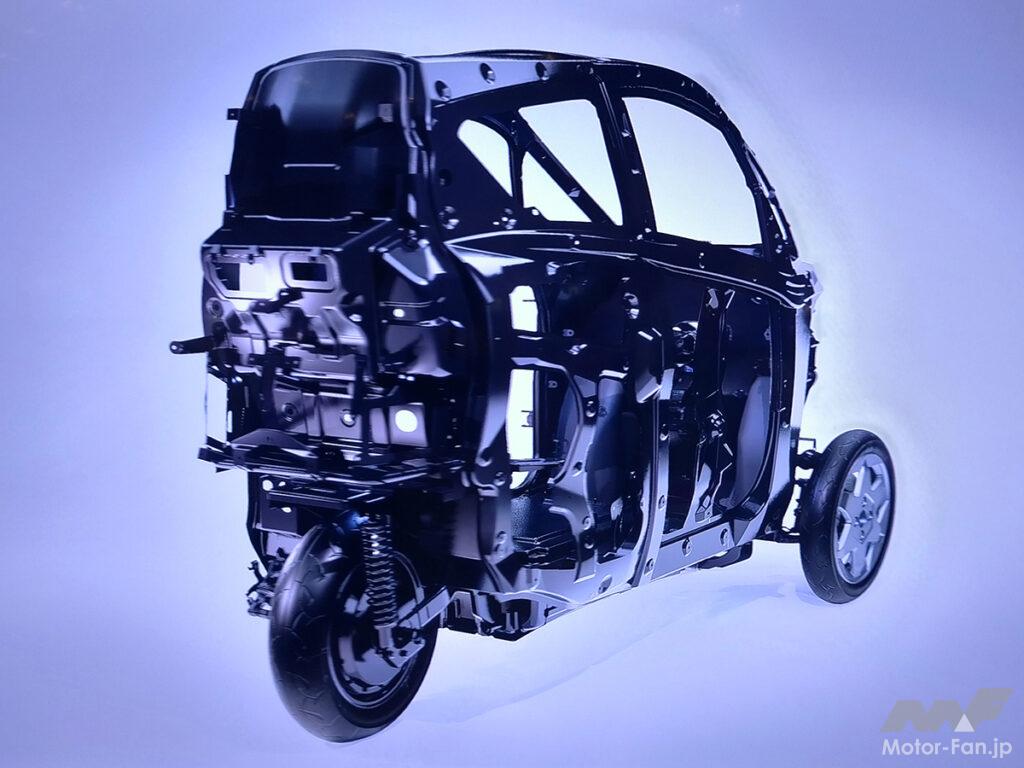 リーン3はフロント二輪で操舵し、リアホイールに内蔵されたインホイール式モーターで駆動するしくみ。床下に搭載する駆動用の大型バッテリーは、容量8.1kWh。満充電時の航続距離は、WLTCのクラス1(出力と重量の比が22W/kg以下の車両)の試験サイクルで100kmを達成。