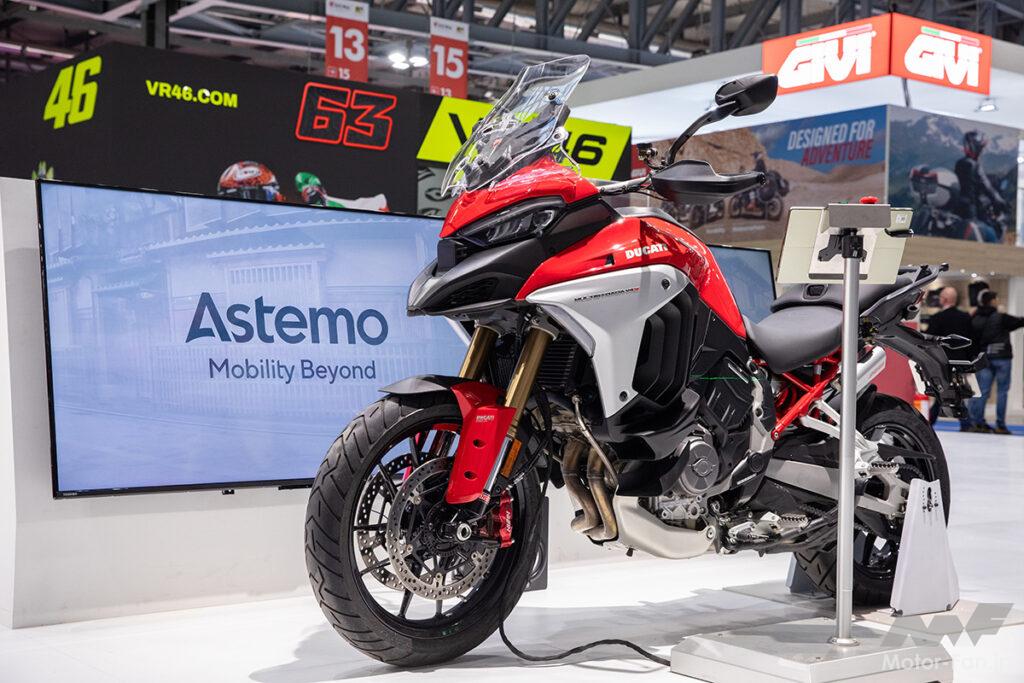 EICMA2024では、前後サスペンションに「ギアポンプ駆動 サスペンションスプリングアジャスター」を搭載した車両を展示。乗車状態で車高を上下させ、その作動スピードとともに、車高調整機構のメリットを体感してもらう体験型の展示を実施。