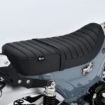 SCシートの“SC”とは、S(スリム)・C(コンフォート/快適)の略。内腿に接する部分をシェイプすることにより、足着き性を向上。シッティングポジションの自由度を上げるため、フラットな上面とグリップ性に優れたタックロール形状の表皮を採用。