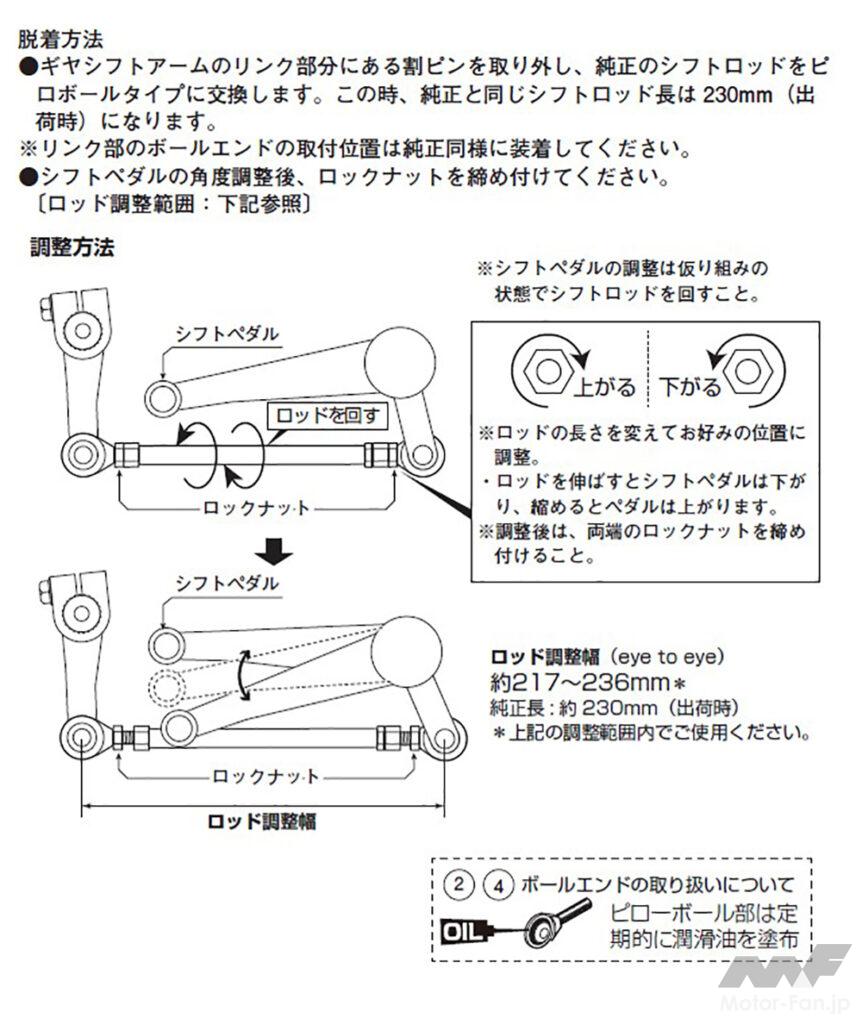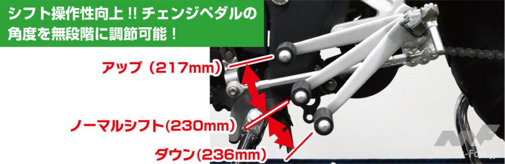 ・シフトリンク調整可能幅:最大約19mm(217~236mm ノーマル約230mm)