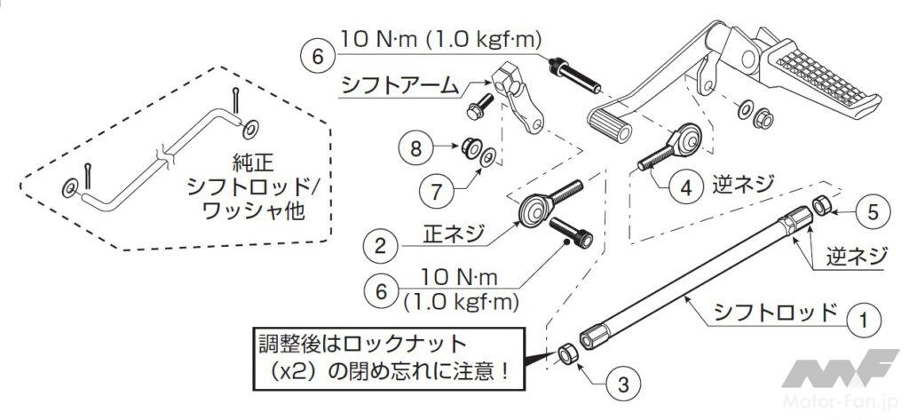 ※基本的なシフトペダル位置はシフトアームの取付角度を決め、シフトリンクで微調整を行って下さい