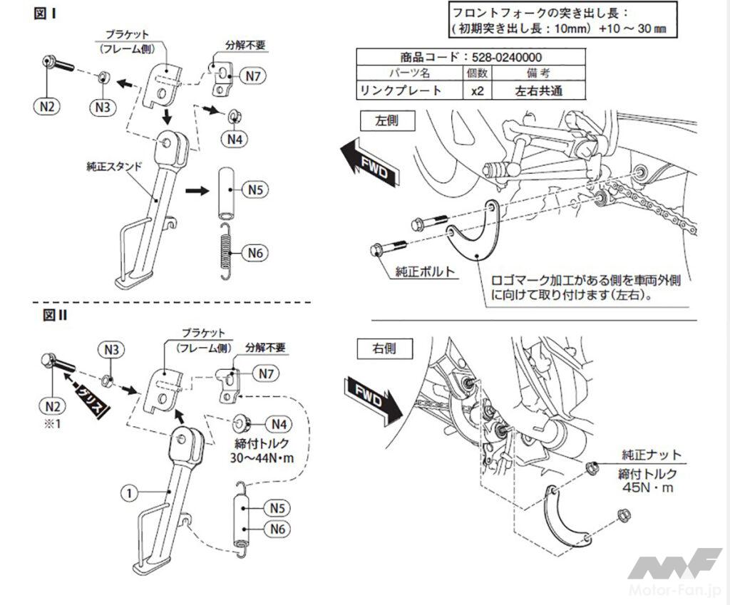小柄な体形のライダーに最適な、ローダウンリンクとローダウン化に対応するショートサイドスタンドが1セットになったキット。シート高を低くして足着き性を改善。ショート型サイドスタンドの採用で、駐車時の車体の傾きも最適化。