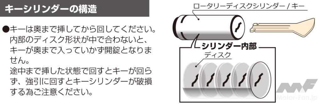 エンジンスイッチをOFFにすると、乗り降りがしやすいようにハンドルが上へ動く車両の場合は、必ずエンジンスイッチがOFF時、エンジンが掛かっていない状態でハンドルロックの脱着作業を行ってください。