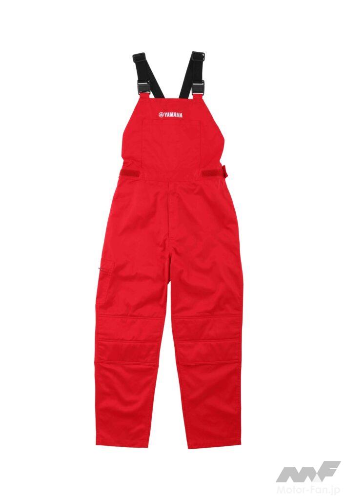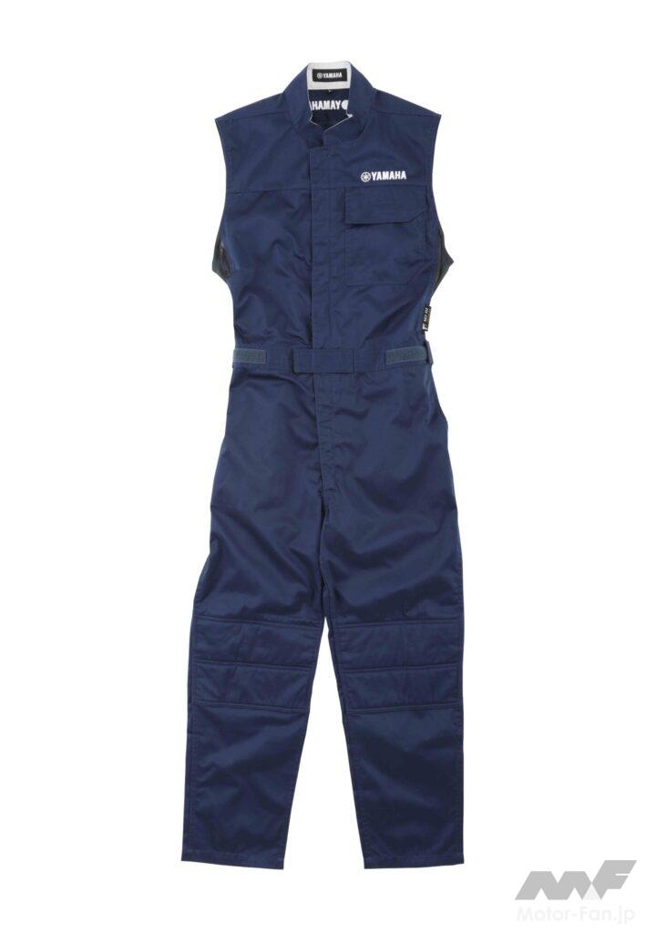 ヤマハファンなら愛車を整備する時にもこだわりたい、ということで、ヤマハ純正のメカニックスーツ4タイプが用意されている。定番の長袖タイプ「WY8001メカニックスーツロングスリーブ」(1万5620円)のほか、これからの季節にぴったりの半袖タイプ「WY8002メカニックスーツショートスリーブ」(1万5180円)、袖なしスタイルの「WY8003メカニックスーツノースリーブ」(1万5180円)、動きやすさにこだわったサロペットタイプ「WY8003メカニックサロペット」(1万2650円)の4タイプが新たに追加された。いずれもシンプルなYAMAHAのロゴを配している。カラーはレーシングブルーのほか、ネイビー、ブラック、ライトグレー、レッドの5色を用意している。