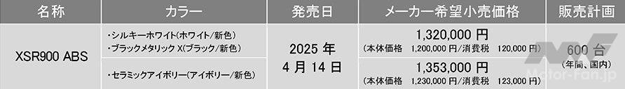 なお、「XSR900 ABS」は、YSPおよびアドバンスディーラーのみで販売する「ヤマハモーターサイクル エクスクルーシブモデル」となっている。購入を希望する場合は、ヤマハのウェブサイトに掲載されている取扱店に問い合わせる必要がある。