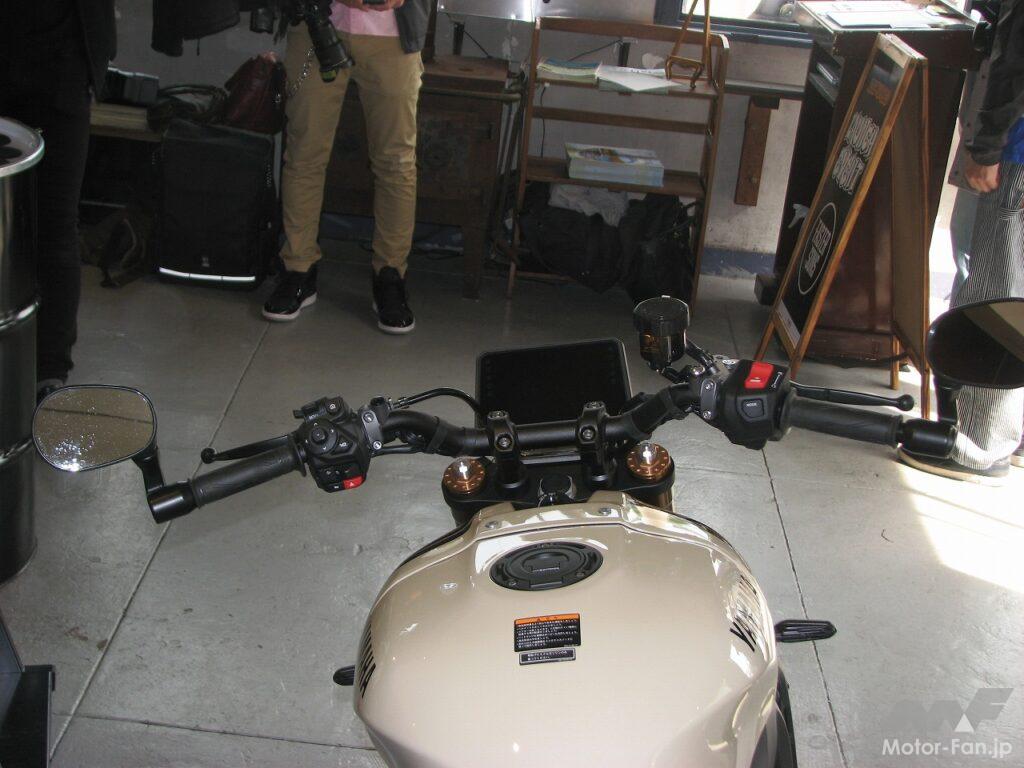 発表会場には新型XSR900ABSのカスタマイズモデルも2タイプ展示されていました。もちろんこれらは市販車ではなくカスタマイズのひとつの提案として仕上げられたものですが、XSR900の楽しみ方をさらに広げてくれる提案として、見どころが多いと思いました。