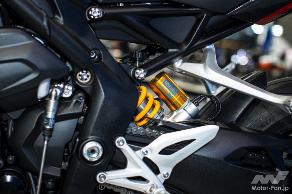 エンジン特性はスムーズでありながら鋭く、ライドバイワイヤとマルチポイント電子燃料噴射が繊細なアクセルワークにも瞬時に反応。エグゾーストシステムには3-1構成のステンレス製ヘッダーとサイドマウントのサイレンサーが採用され、独特の三気筒サウンドが高揚感を掻き立てる。