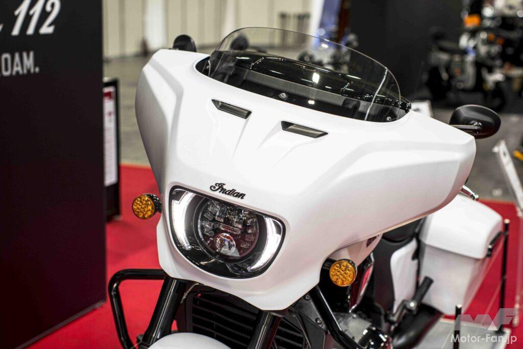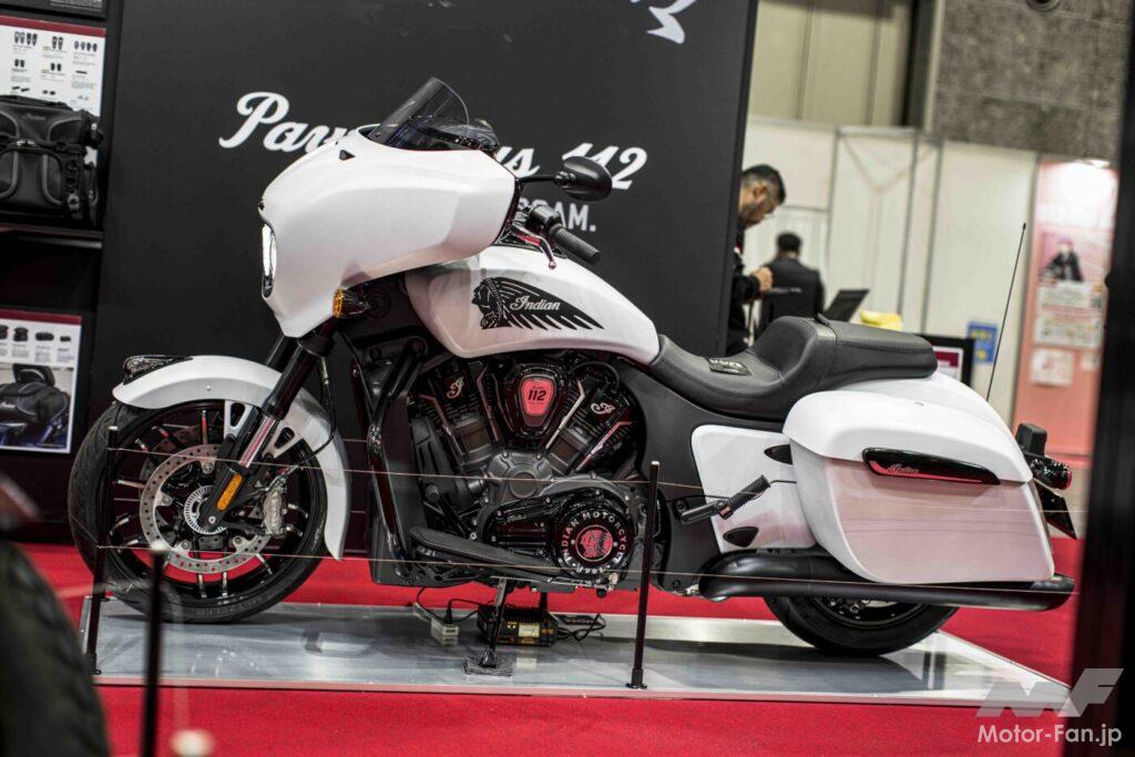 2019年に誕生したバガーモデルに搭載された、自社製の水冷エンジン「PowerPlus108」は、排気量108キュービックインチ(1768cc)の水冷60度V型2気筒OHC4バルブのショートストロークで、最高出力は112hp、最大トルクは178Nmとパワフルさを誇るエンジンだ。このPowerPlusエンジンをさらにパワーアップした「PowerPlus112」が、2025年モデルから選択できるようになった。3月21日から23日まで開催された大阪モーターサイクルショーのインディアンモーターサイクルブースでは、PowerPlus112を搭載した「CHIEFTAIN POWER PLUS 112」が日本初公開となった。