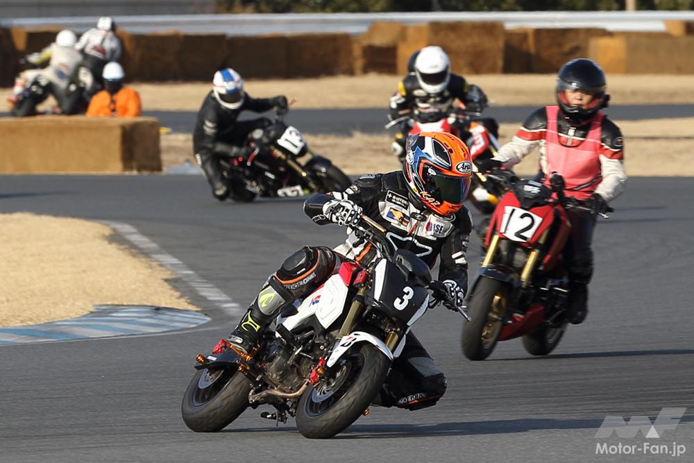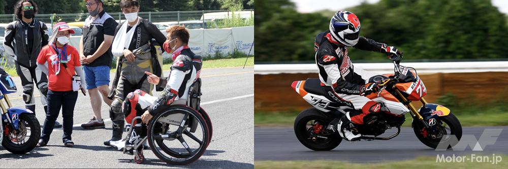 青木拓磨さんは特別にカスタムされたグロムに乗り、参加者に混じってサーキットを走ることもあるのだ。