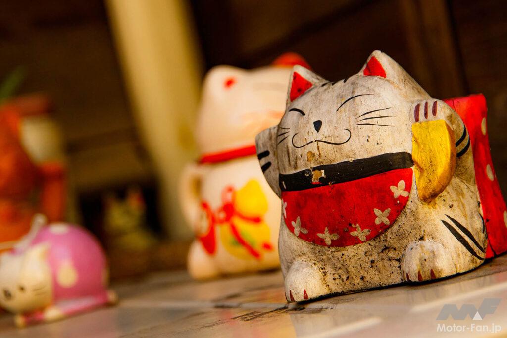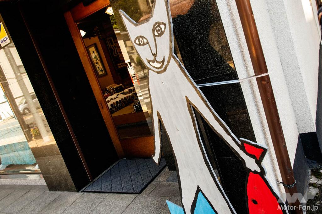 青梅街道の1本奥の路地にある「にゃにゃまがり」。元は七つの曲がり角があることから“七曲がり”と呼ばれていましたが、20年ほど前から「にゃにゃまがり」として地元の方々が猫のオブジェを飾っています。かつて養蚕で栄えた青梅は、猫が多い「猫町」でもあるそう。