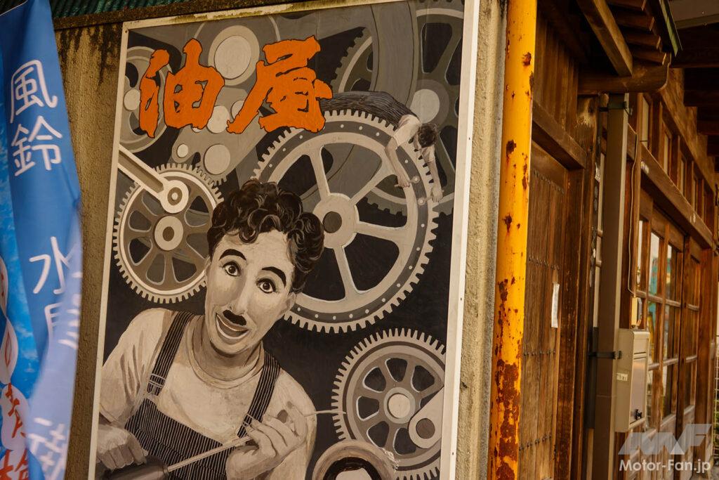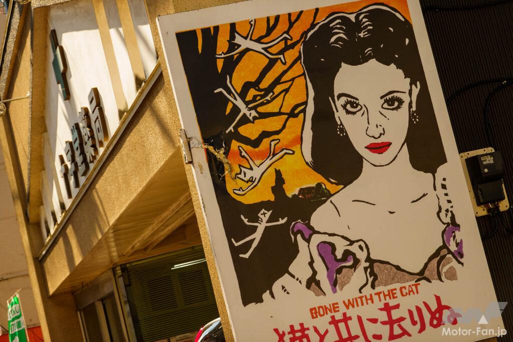 青梅駅前をはじめ、街のいたるところで目にする映画看板。これらの看板の多くは、日本最後の映画完版絵師とよばれる久保板観さんによって描かれました。街中を散策するだけで、昭和30年代にタイムスリップしたような気分に。映画のパロディ作品は学生による制作だそう。