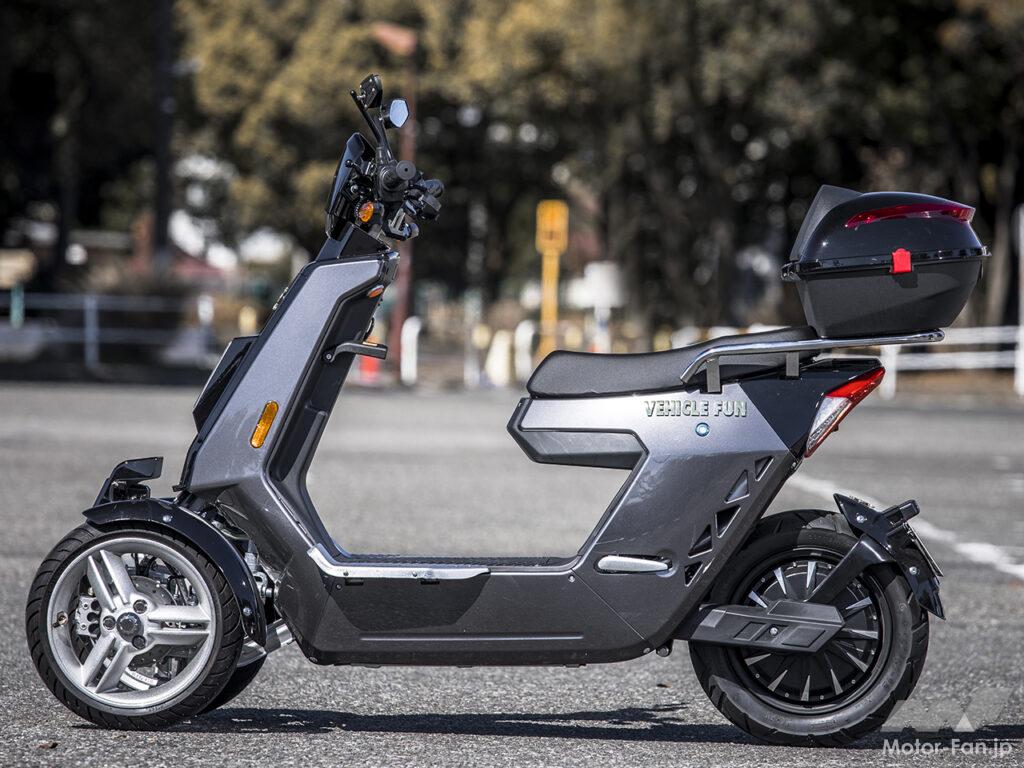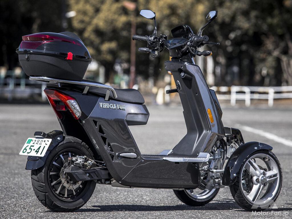 リアホイールに大容量で超パワフルな3000Wのハブモーター(ホイールに直接モーターを設置したタイプ)を組み込み、アクティブでスポーティな走りを実現した、フロント2輪・リア1輪の電動三輪車。個性的な外観は、一見レジャー志向が強いイメージ。しかしその走りは、大容量ハブモーター採用モデルならではの非常に過激で攻撃的なもの。