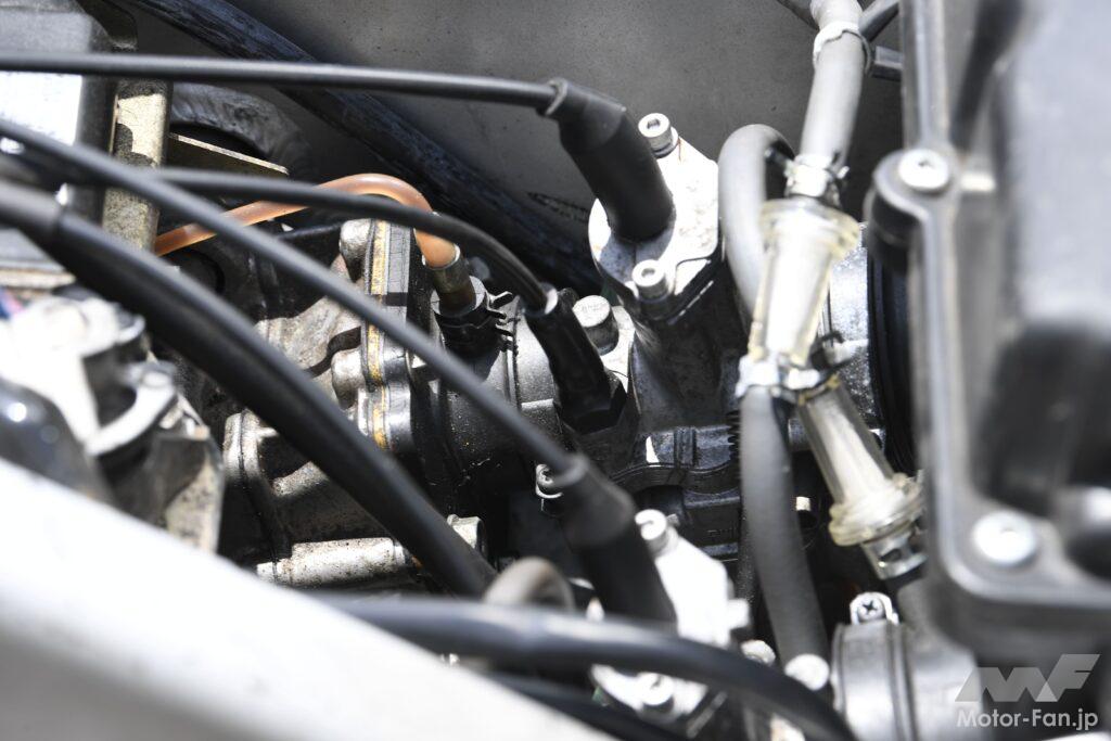 さて、何だか情緒的な話が先行してしまったが、ここからはKR-1Sそのものの感想。最初にエンジンについて述べると、同時代のライバル勢が中高回転域で急激にパワーが盛り上がる、いわゆるドッカンな特性だったのに対して、KR-1Sは低回転域でも右手の動きに対するエンジンの反応がリニアで、どんな領域からでもスムーズにパワーが取り出せる。この特性には、シリンダーを50度も前傾させて実現したストレート吸気やカーボン製リードバルブなどが貢献しているようで、とにかくアクセルが開けやすいのだ。
