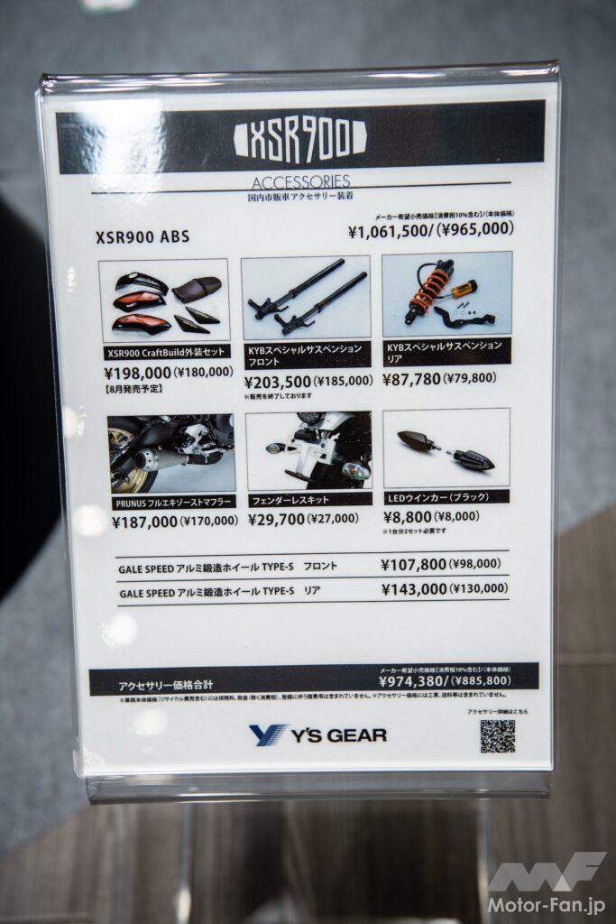 ヤマハのアクセサリー用品を開発販売する専業会社、ワイズギアはヤマハユーザーならずとも多くの人が知っていることだろう。ヤマハ車に適合するアクセサリーやウエアなどを選ぶなら、まず外せないモノがラインナップされている。ただ、ワイズギアがコンプリートカスタムを提案していることをご存知だろうか。2022年の東京モーターサイクルショーに出展したワイズギアのブースには、懐かしくもカッコ良いスタイルに仕立てられたXSR900のカスタム車が展示されていて、思わず見入ってしまった。