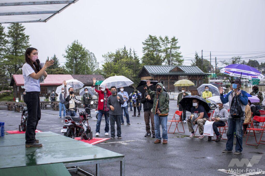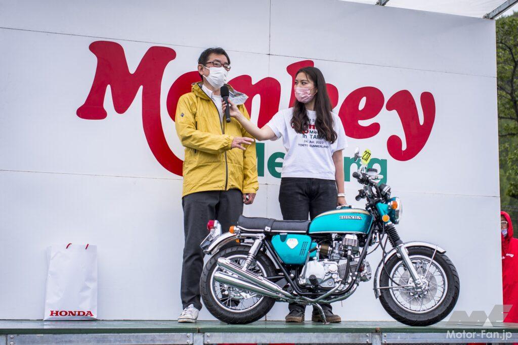 ランチサービスが行われるお昼前後になると完全な雨模様となり、貴重な旧モデルやカスタム車を持ち込まれた参加者たちが続々と帰ってしまうというハプニングになった。だが、午後1時からのバイクフォーラムに続いて行われたジャンケン大会には、残った参加者たちが全員参加で豪華景品を狙いすます。景品の数が多いので結構な確率でジャンケンに勝ち進めるため、根強い人気の催しでもあるのだ。さらにこの後はコンテスト表彰式へと続く。参加者による人気投票だけでなく協賛企業やゲストからも賞が与えられ、全員の表彰が終わるのは午後3時過ぎ。丸一日をモンキー漬けで楽しめるイベントなのだ。今回参加できなかった人は来年の開催を心待ちにしていただきたい。
