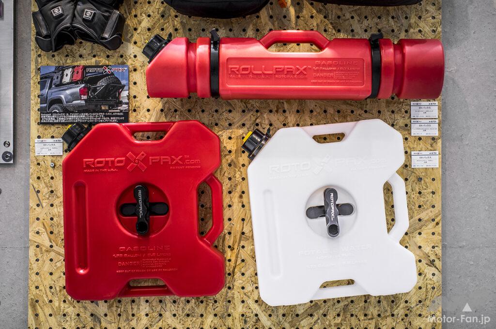 リアの左サイドには専用キットを使い、アメリカで人気のクルマ・バイク・ATVなどに搭載可能な携行コンテナメーカー「Rotopax(ロトパックス)」のウォーターコンテナ(容量1.75ガロン=約6.6L)を装着。水場のない屋外での料理などにも重宝する仕様に仕上げている。