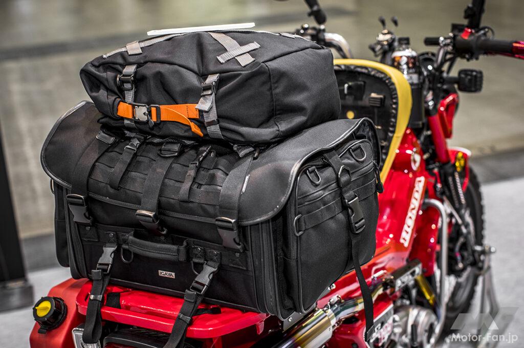 様々なブランドを取り扱うプロトが製作した、アウトドアでの使用にこだわり抜いたCT125ハンターカブ。純正の大型リアキャリアには、大容量のキャンプツーリングシートバッグ(50-64L)を固定。