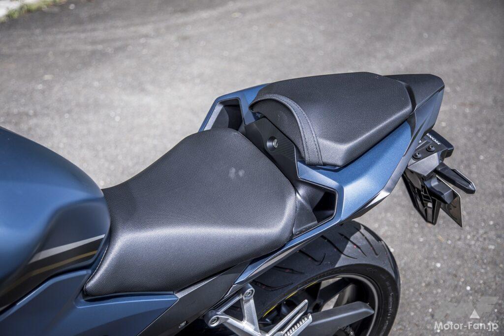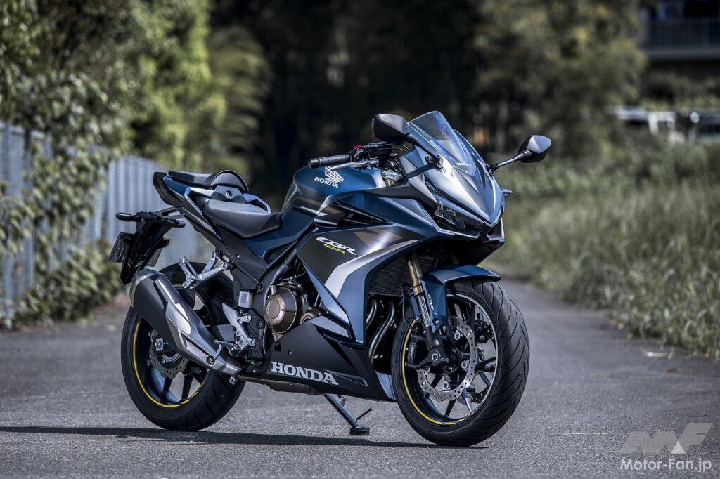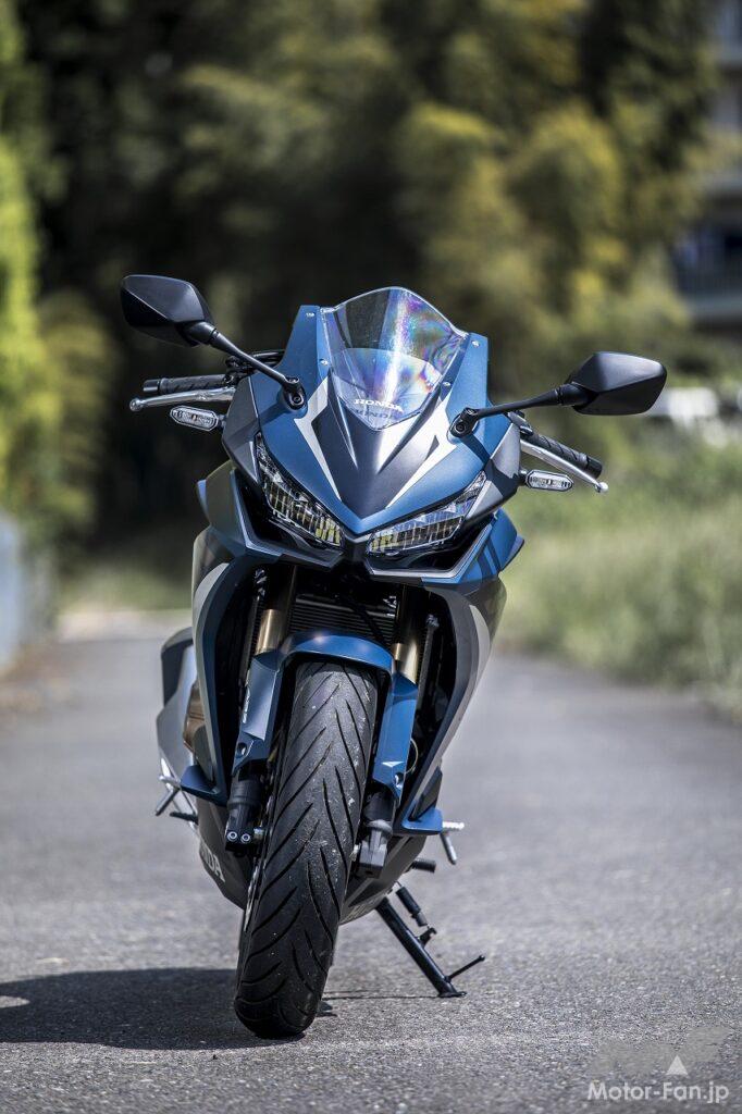 ミドルスーパースポーツモデルCBR400Rがまたまた進化しました。フルカウル装備のアグレッシブなボディスタイリングは従来型から継承されていて、レーシーさを主張したレッドカラーのほかはマット系のブラックとブルーの3色が用意されています。今回はマットブルーのカラーリングのモデルに試乗したのですが、スポーティさの中にも落ち着きがあって、ボクのようなおじさんライダーにもあまり抵抗なく乗ることができました。