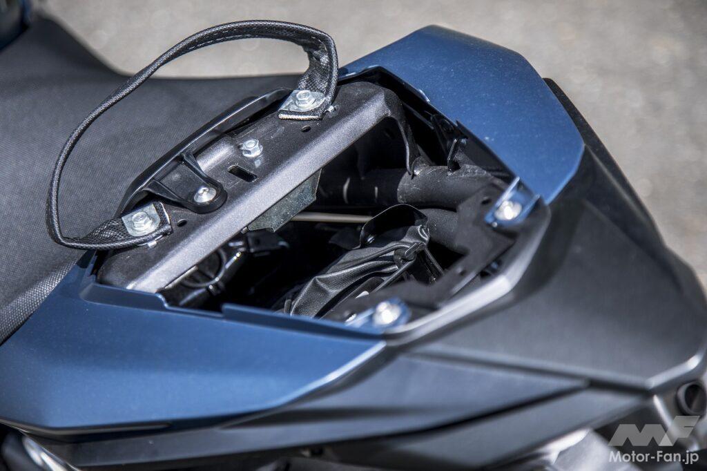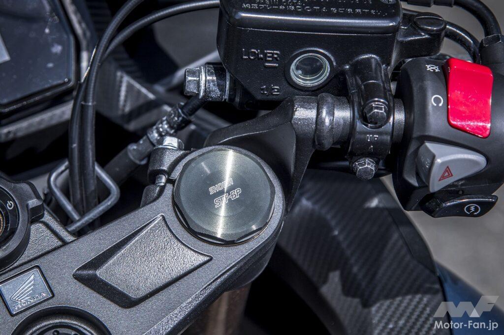 最新型での変更点は足回りの強化によって走りの質を高めていることです。具体的には、路面追従性に優れ、高い操縦安定性と上質な乗り心地を提供するショーワ製SFF-BP(セパレート・ファンクション・フロントフォーク・ビッグピストン)の採用と、高い制動力を発揮させるため、ラジアルマウントキャリパーを装備したフロントダブルディスクブレーキの採用、さらにスイングアーム剛性の最適化とフロントホイールの軽量化が図られ、一段と軽快なハンドリングの実現を目指しているとのことです。