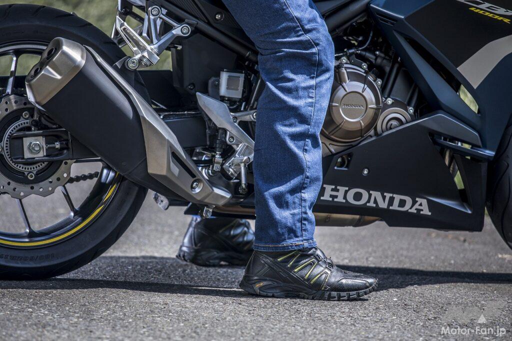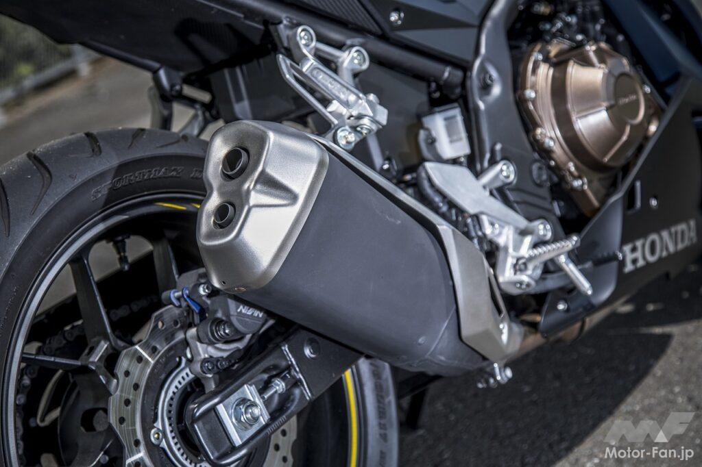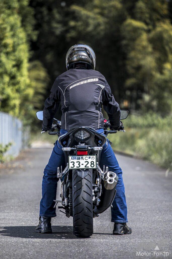 クラッチ操作の軽さに気をよくして走り出すと、軽快なスロットルレスポンスでスムーズに吹け上がるエンジンが、狙い通りの加速を実現してくれます。全回転域でフラットな特性を示すエンジンに強烈なパワーは感じにくいのですが、トルク不足はないので、それこそ意のままにコントロールできるエンジン特性です。250だと吹け上がりが緩慢だったりトルクが細く感じる部分があるのですが、さすがにこの400㏄エンジンにはそうした非力さを感じません。そして現実に、高速道路やワインディングを含めて公道レベルでの使用には十分すぎるポテンシャルを持っていると思いました。