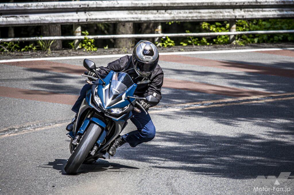 走行性能をさらに高めた新型CBR400Rはたしかにスポーツ性を向上させていました。しかしエンジンパフォーマンスも含めて走りの質はあくまでもフレンドリーで扱いやすいのが特色です。そのうえでサーキット走行も楽しめる性能も持ち合わせているのですから、スーパースポーツの雰囲気をだれもが手軽に味わえる。そんな魅力があると感じました。