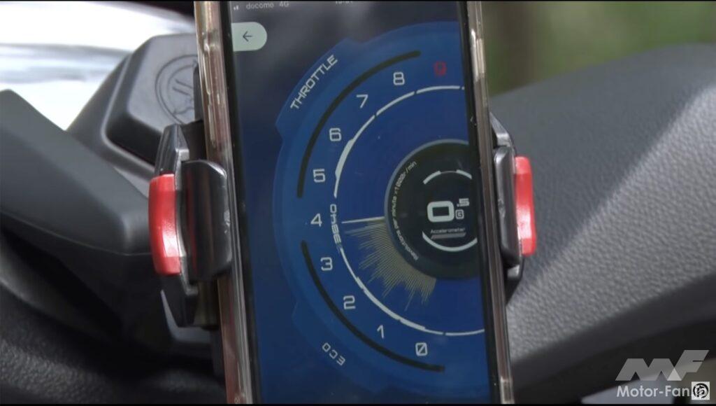 新型NMAXで注目されるもう一つの装備がYコネクトだろう。スマートフォンと連動することで様々な角度から車両管理ができるシステム。さらにスロットル開度やエンジン回転数、エコ運転状況をモニターできるほか最終駐車位置を表示してくる機能などはヤマハのHPを参照してほしいが、動画なら実際に試している様子が確認できる。画面表示の切り替え方など、ぜひ動画でご覧いただきたい。