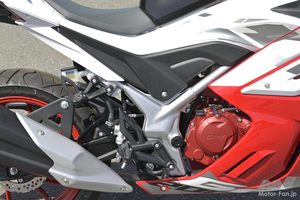 車体に一本筋が通ったような剛性感が感じられ、ハンドリングはよりシャープに。挙動もより軽くなり、バンク時の安定感やライン取りの自由度も向上。見た目以上に変化が大きく、走りは完全にレーサーだ。これは本当に楽しいぞっ!