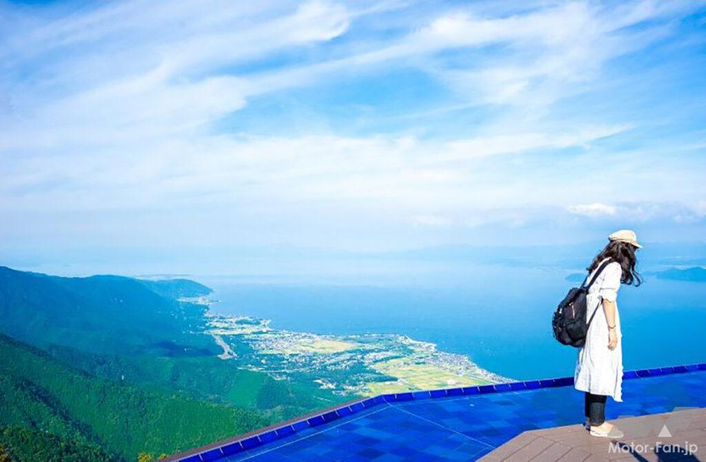 約18.8kmのドライブウェイの道中に位置する展望台。夏の時期は美しい緑と琵琶湖の景色をお楽しみいただけます。展望台の奥には「恋人の聖地」も。