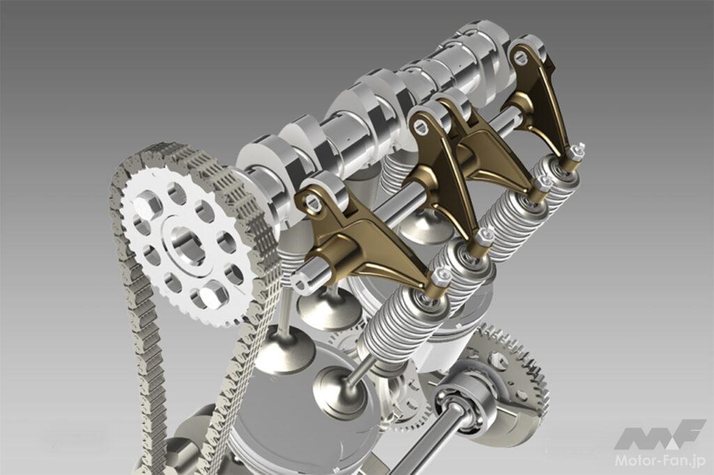 素早く的確に動く必要がある吸気バルブだけをDOHCと同じ仕様とすることで、一般的なSOHCよりも、効率的に高回転化&高出力化を実現。なお、ユニカムは、