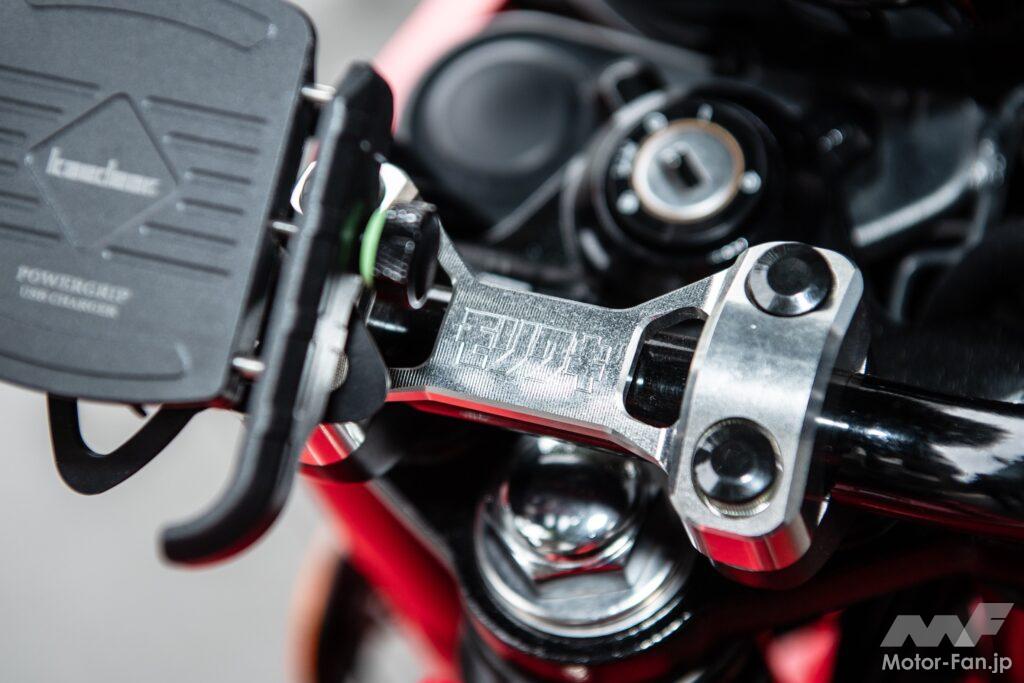 ハンドルバー本体やマルチバーを追加してスマホホルダーを装着するユーザーが増えている。走行中にスマホ画面を見るときなどはハンドルホルダーが視界に入ることがほとんど。その場合に純正のブラックではなくアルミ製品に変わっていると、ヘルメットの中で思わずニヤリとしてしまうもの。価格は7150円(税込)で他製品同様に価格改定があるかもしれない。