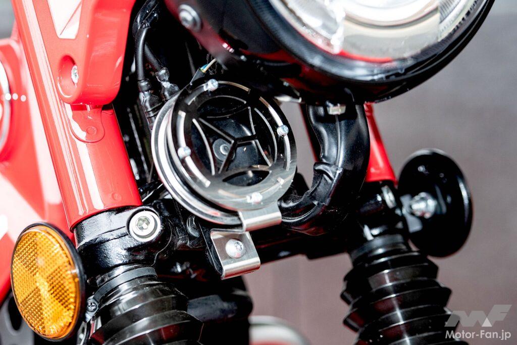 ブラック仕上げで控えめな純正ホーン。ところがモリワキロゴを纏ったステンレス仕上げのガードを装着すると、これだけで存在感がグンと上がる。実用性より視覚効果を狙った製品で、細かいことを問わずカッコ良ければいいじゃん!というユーザーにアピールすることだろう。こちらも発売時期や価格は未定だ。
