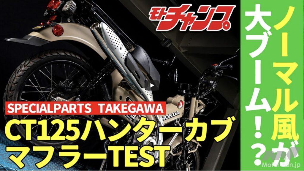 大注目のCT125・ハンターカブに装着してテストをするのはSP武川から発売されているスポーツマフラー(ノーマルルック)という製品。ノーマル形状のまま音質と性能を変えられるもので、CT125のスタイルが好きだがカスタムもしたいというユーザーにうってつけのマフラー。動画ではマフラー交換の手順から装着後の試乗インプレまで紹介されているので、早速チェックしてみよう。