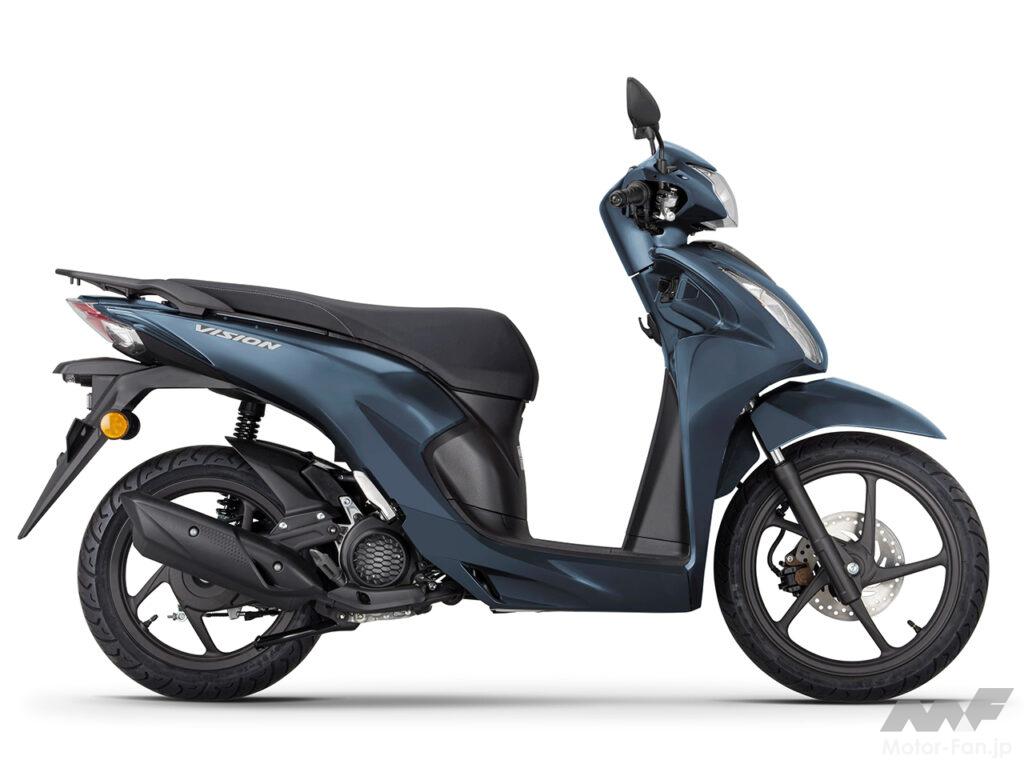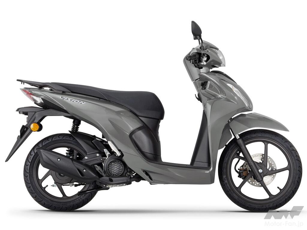 ホンダ ヴィジョン110は2012年に登場した、ヨーロッパ市場をメインに販売される小型スクーター。8.7馬力を発揮する環境性能の高いeSPエンジンは、空冷4ストローク単気筒SOHC 2バルブ109.5ccのロングストローク型(ボア径47.0mm×ストローク長63.1mm)を搭載。